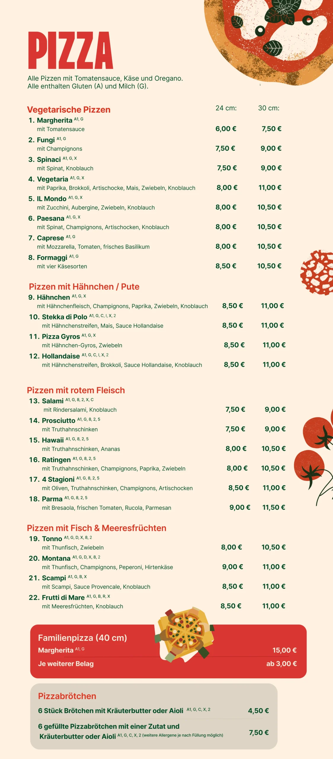 Wir liefern kostenlos ab einem Bestellwert von: 12,50 € in Ratingen-Ost, -Süd und -Mitte 18,00 € in Tiefenbroich, Lintorf und Hösel 18,00 € in Ratingen-West (ohne Getränke und Desserts)